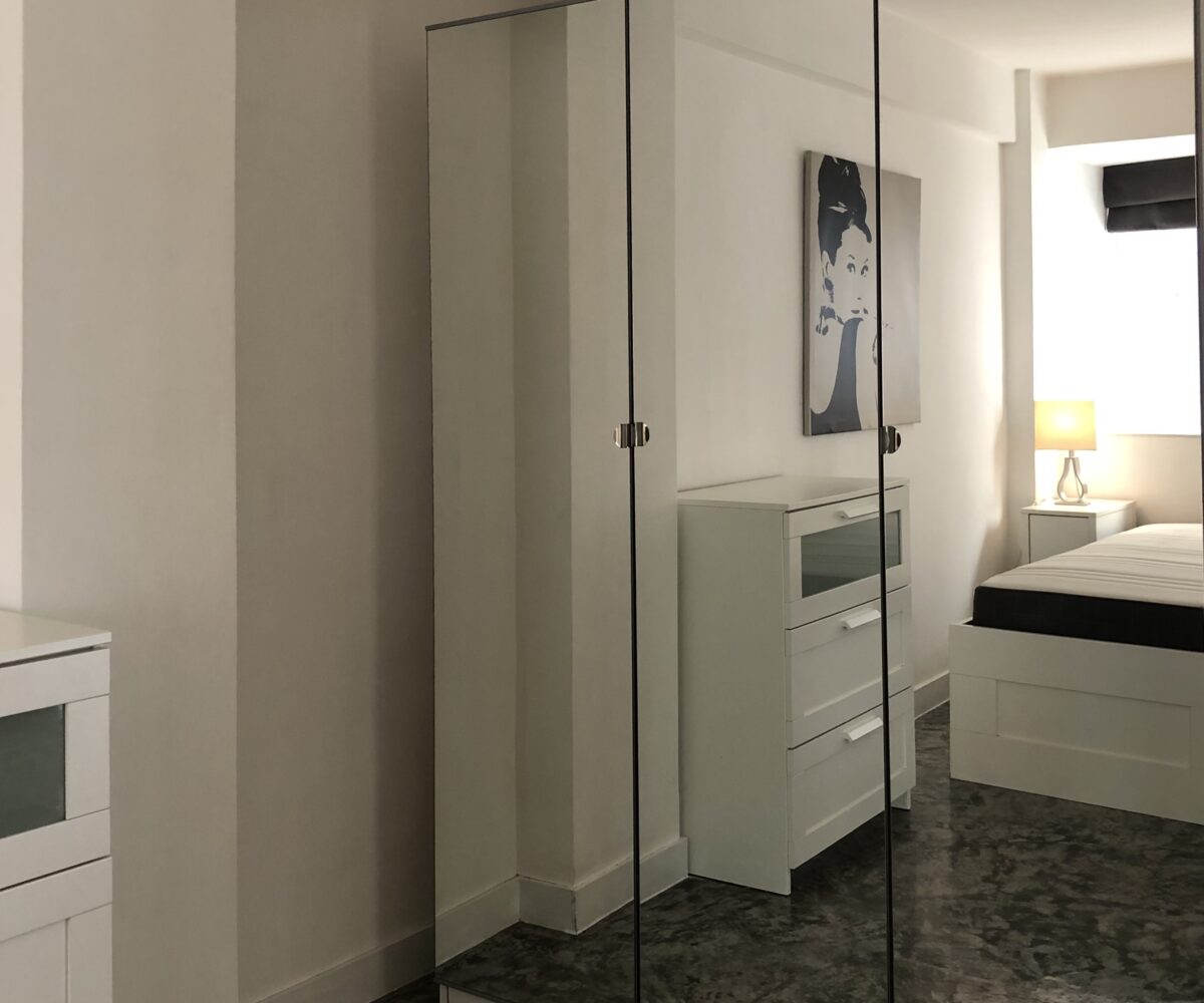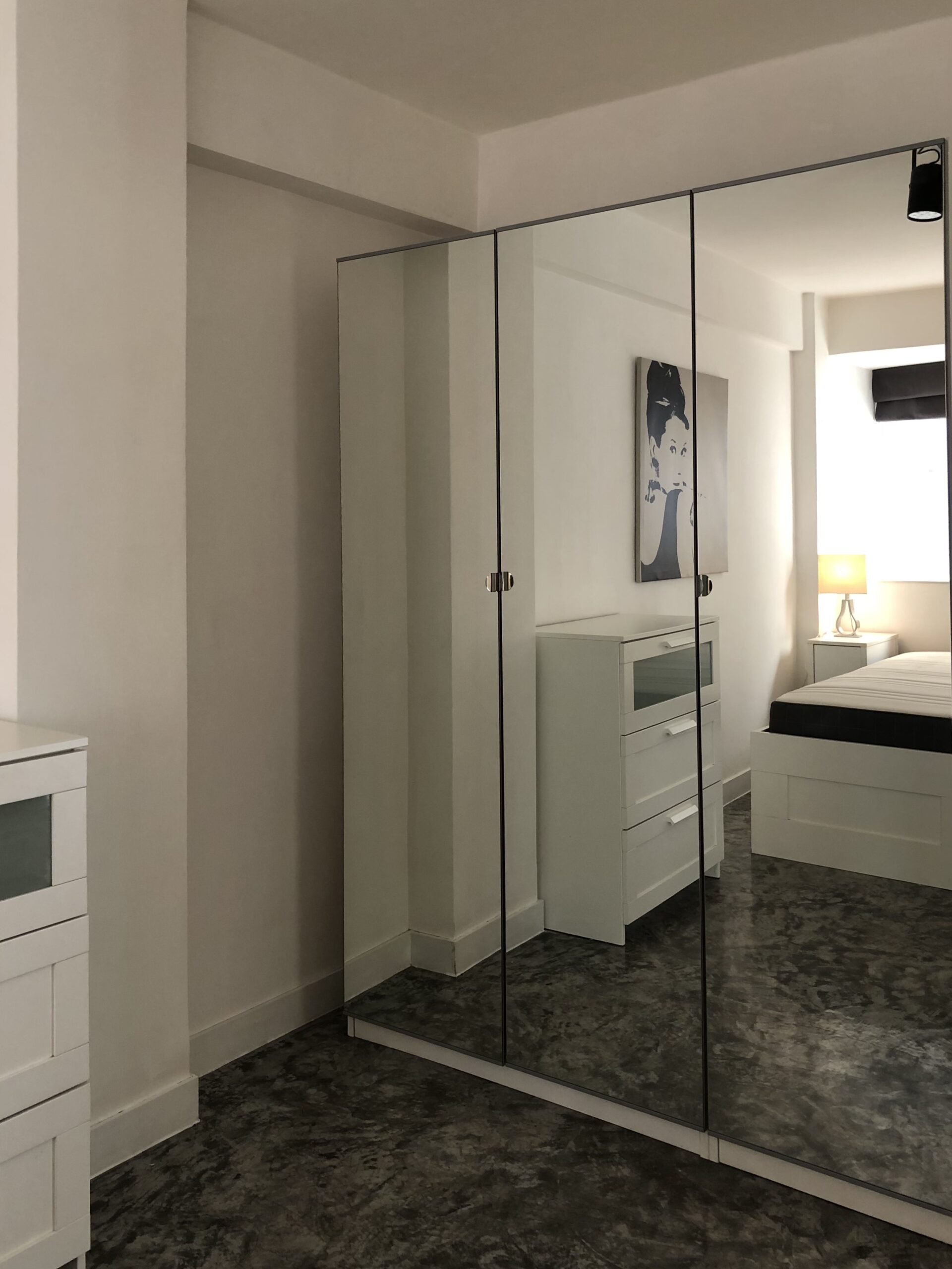 This apartment has got a balcony which brings in plenty of natural lights making the flat extremely bright. Quality fixtures throughout including fully functioning TV, refrigerator and washing machine. Balcony windows have screens and air conditioners in both the living room and bedroom insure good air circulation.